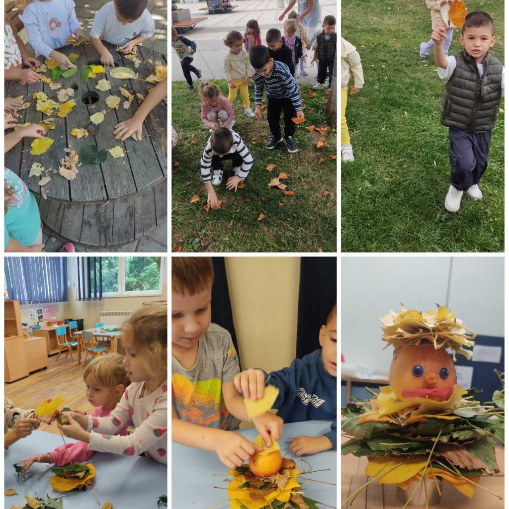 Током шетње градом, деца су уочавала промене у природи и сакупљала опало лишће, кестене, орахе, од којих су касније у вртићу настале лутке ,,Јесенке”.