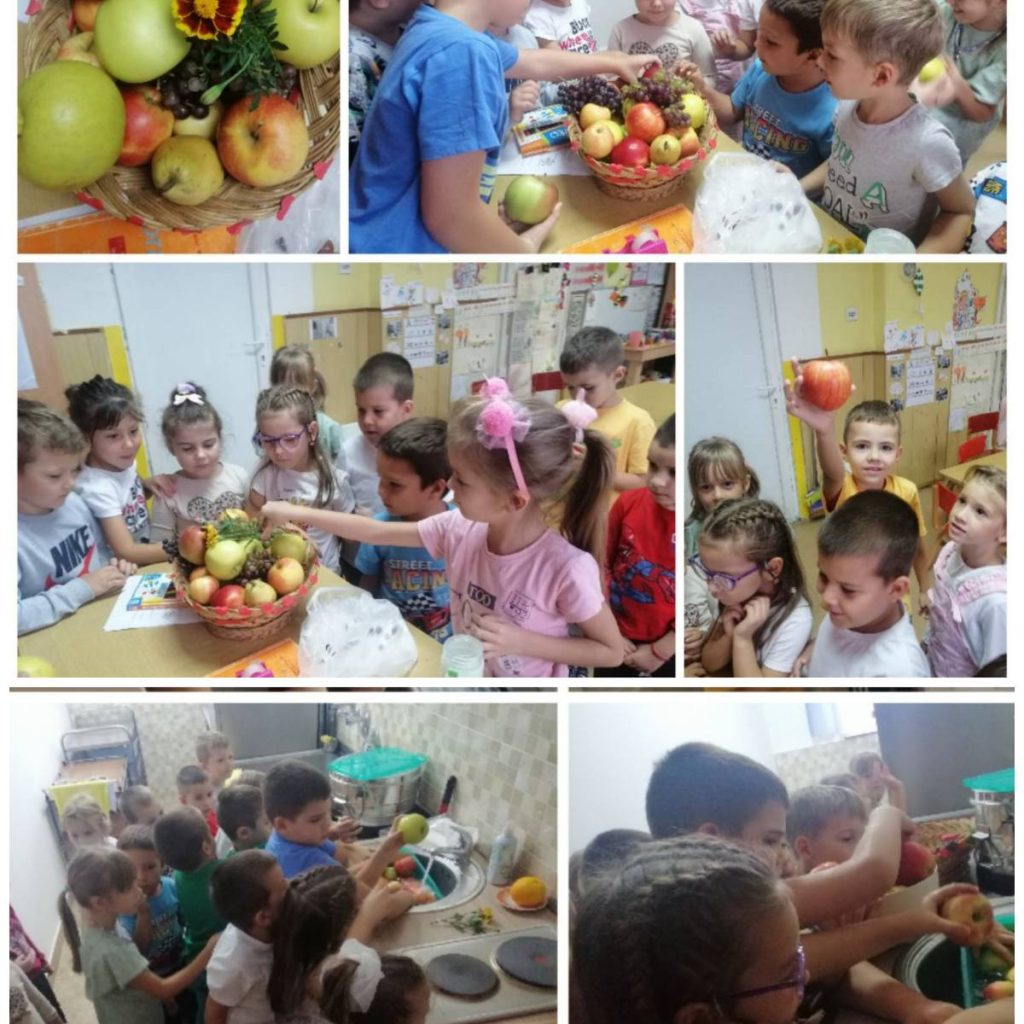 Кроз обраду стихова,, Хвала” деца су се упознала са врстама воћа, именовањем, укусом, ко шта воли да једе. У кухињи смо припремили воће за употребу.