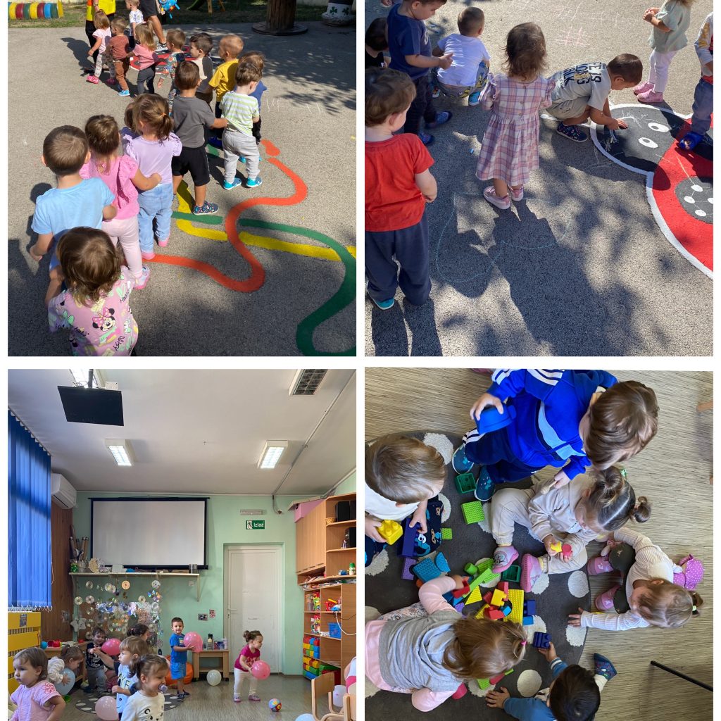 Деца имају прилику да бораве у дворишту вртића, учествују у заједничким шетњама и проводе време у соби кроз игру у различитим просторним целинама, што им помаже да постепено упознају ново окружење и осећају се сигурно.